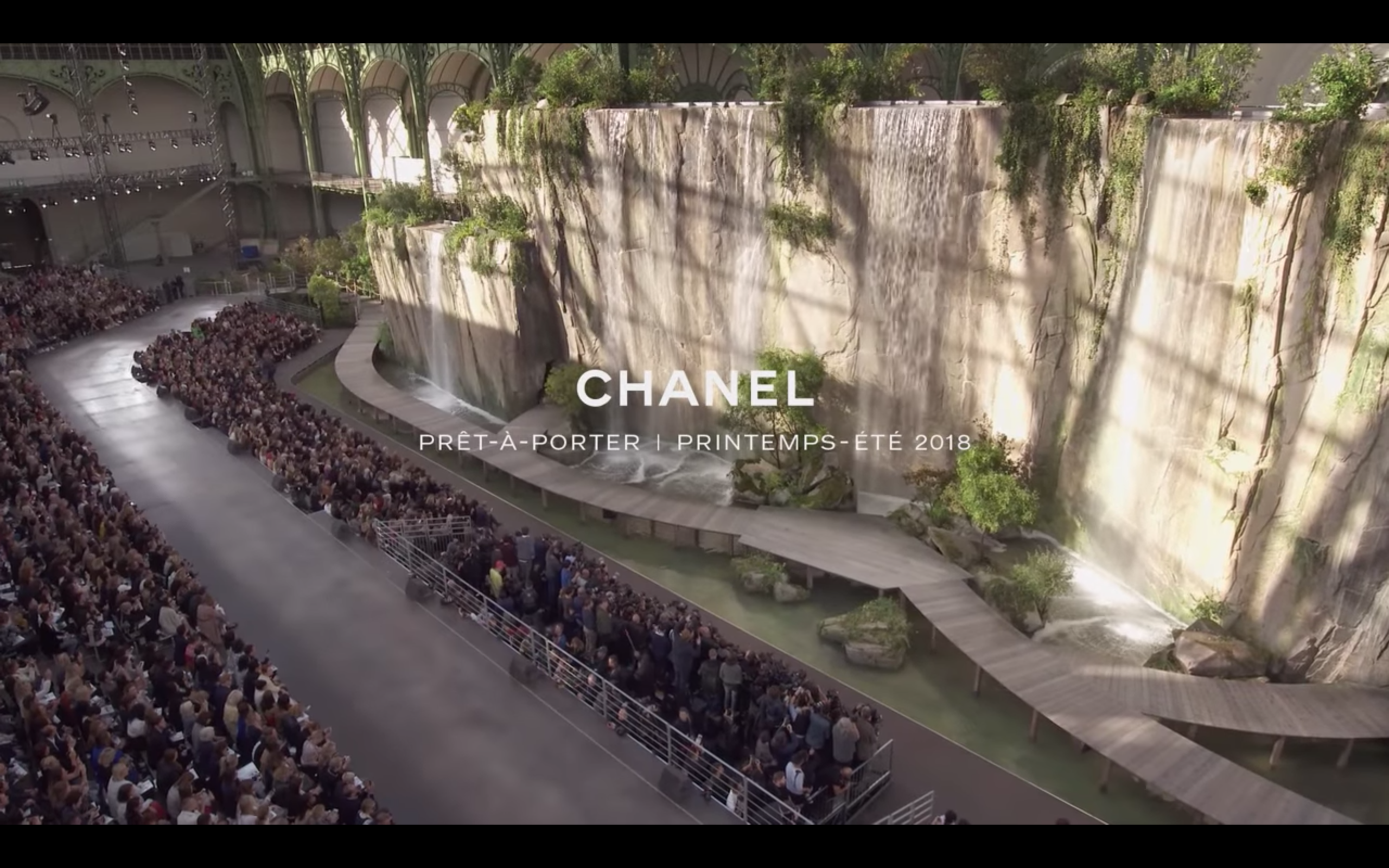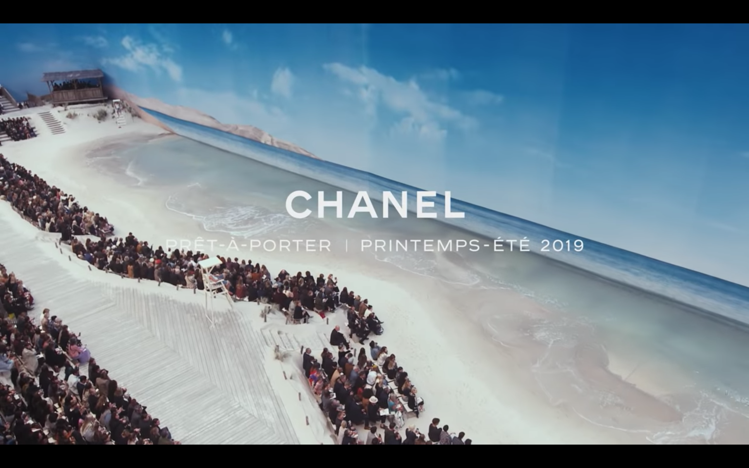 샤넬 쇼의 단골 무대인 프랑스 파리의 ‘그랑 팔레’에서 펼쳐졌는데, 위 영상에서 볼 수 있는 것처럼 해변을 그대로 옮겨 왔다. 실제 해변의 모래를 가져왔고, 파도가 치는 모습까지 완벽하다. 이와 관련해 잘 설명한 해당 호의 글이 있어 옮겨 보았다.