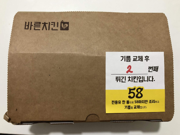 기름을 교체한 뒤 몇 번째로 튀겼는지 적혀있는 것도 신기했지만, '58'이라는 숫자에 눈길이 갔다.