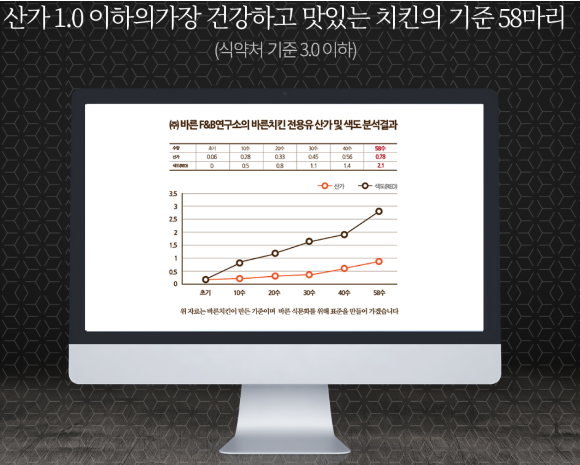 홈페이지에 들어가봤더니, 직접 연구한 결과 58마리만 튀길 때가 가장 건강하고 맛있는 치킨이 된다고 한다.