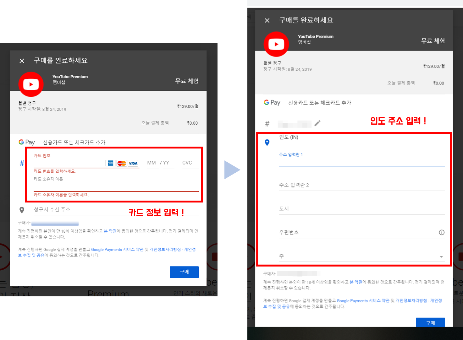 ('129루피'인지 확인하시고, 주소에는 인도 주소를 넣어 주세요!)