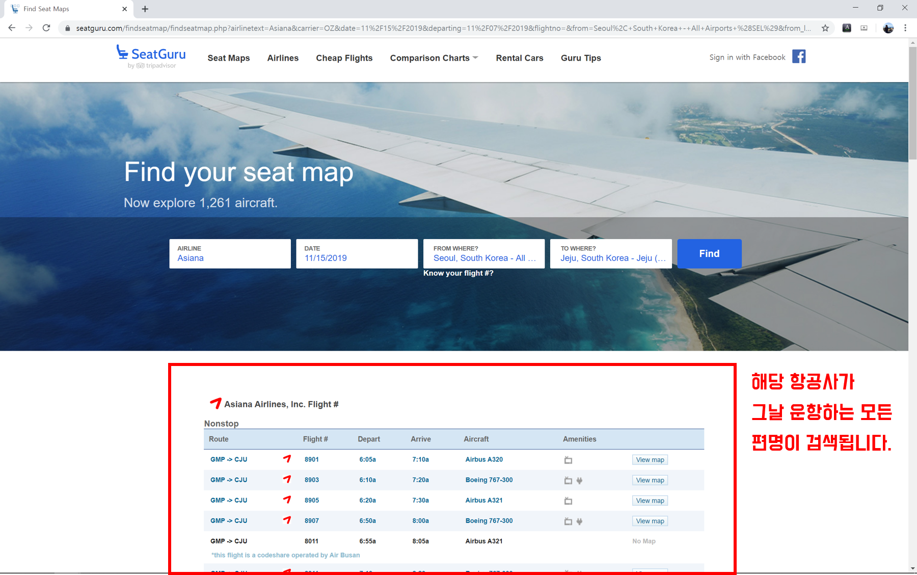 먼저 seatguru 홈페이지에 접속해줍니다.